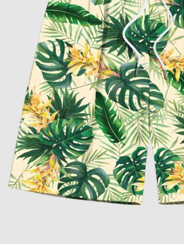 Plus Size Tropical Leaf Flower Print Hawaii Beach Shorts - Green - L