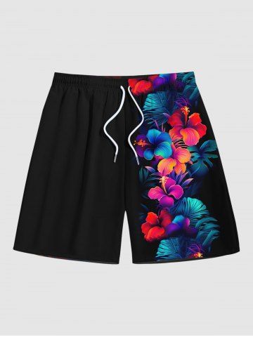 Bottoms > Plus Size Tropical Leaf Hibiscus Flower Print Hawaii Beach Shorts For Men