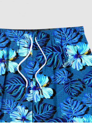 Plus Size Tropical Leaf Hibiscus Flower Print Hawaii Beach Shorts For Men - Blue - 6xl