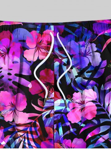 Plus Size Tropical Leaf Hibiscus Flower Print Hawaii Beach Shorts For Men - Purple - Xl