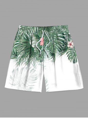 Plus Size Tropical Leaf Hibiscus Flower Print Hawaii Brach Shorts For Men - Green - Xl