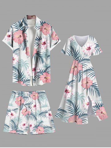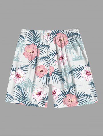Bottoms > Plus Size Tropical Leaf Hibiscus Flowers Coconut Tree Print Hawaii Beach Shorts For Men