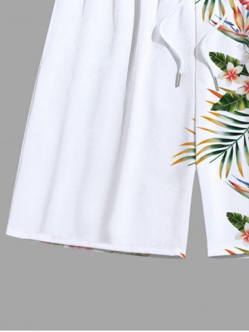 Plus Size Tropical Leaf Hibiscus Flowers Print Hawaii Beach Shorts - White - 6xl