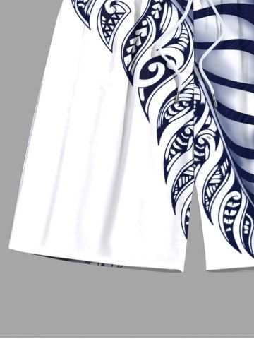 Plus Size Tropical Leaf Pattern Colorblock Print Hawaii Beach Shorts For Men - Blue - 2xl