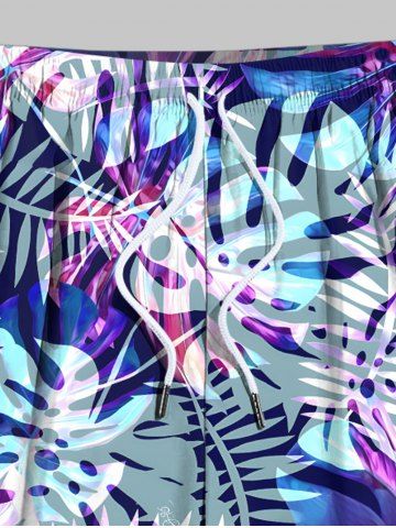 Plus Size Tropical Leaf Print Hawaii Beach Shorts For Men - Purple - M