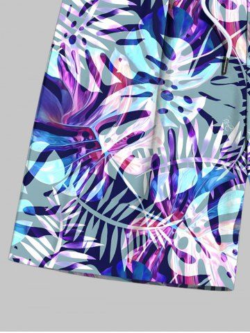 Plus Size Tropical Leaf Print Hawaii Beach Shorts For Men - Purple - L