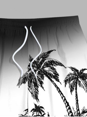 Plus Size Tropical Seascape Coconut Tree Sailboat Lounge Chair Ombre Print Pocket Hawaii Beach Shorts - Black - 2xl