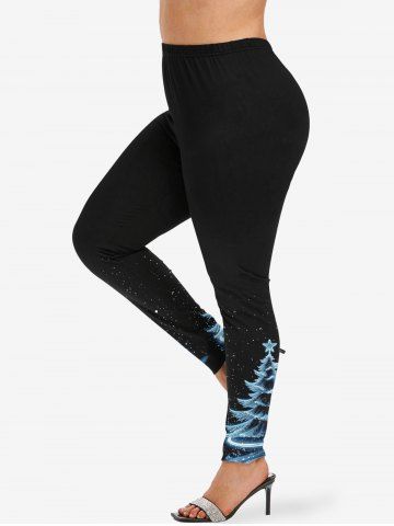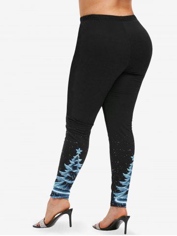 Plus Size Women's Christmas Tree Galaxy Print Leggings - Black - 2x