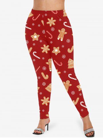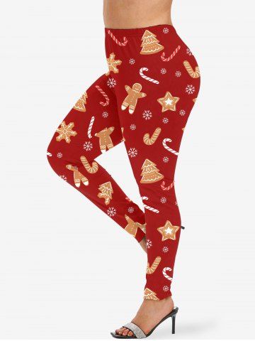 Plus Size Women's Christmas Tree Star Gingerbread Print Leggings - Red - 1x