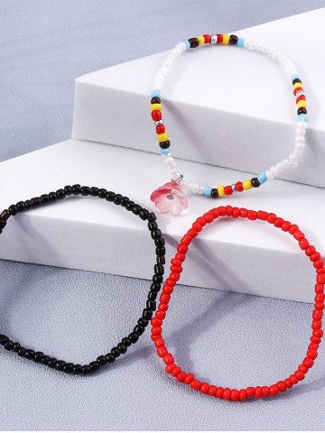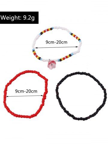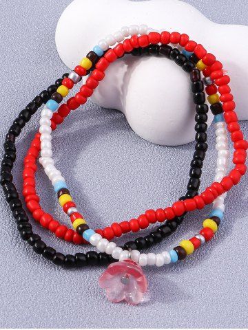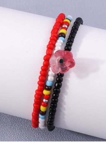 3Pcs Colorful Beaded Flower Charm Bracelet - Multi