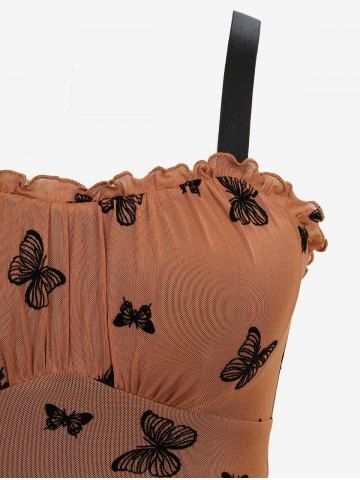 Butterfly Flocking Layered Handkerchief Caimi Dress - Coffee - Xxxl