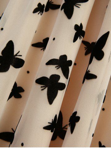 Butterfly Printed Ruched Surplice Tie Shoulder Tank Dress - Apricot - Xl
