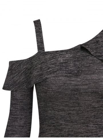 Cold Shoulder Skew Neck Flounce Heather High Low Dress - Dark Gray - Xxxl