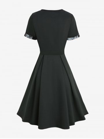 Floral Flocking Tie Dye Lace Up A Line Dress and Heart Buckle Cropped Top Set - Black - S