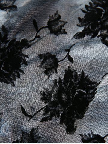 Floral Flocking Tie Dye Lace Up A Line Dress and Heart Buckle Cropped Top Set - Black - L