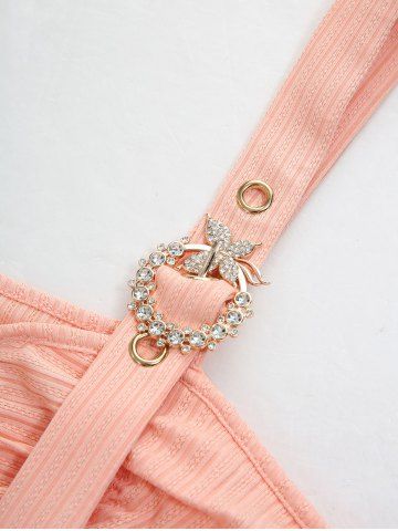 Floral Jacquard Butterfly Lace Grommets Ruched Lace-up Panel Buckles Tank Dress - Light Orange - Xl