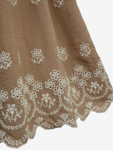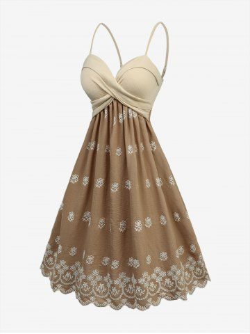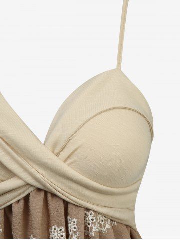 Flower Embroidery Striped Crossover A Line Cami Dress - Tan - L