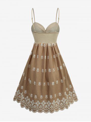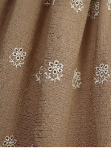 Flower Embroidery Striped Crossover A Line Cami Dress - Tan - Xxl