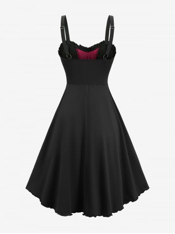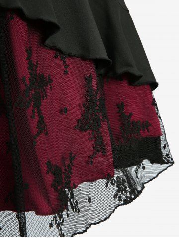 Flower Lace Jacquard Lace Up Ruffles A Line Dress - Deep Red - Xxl