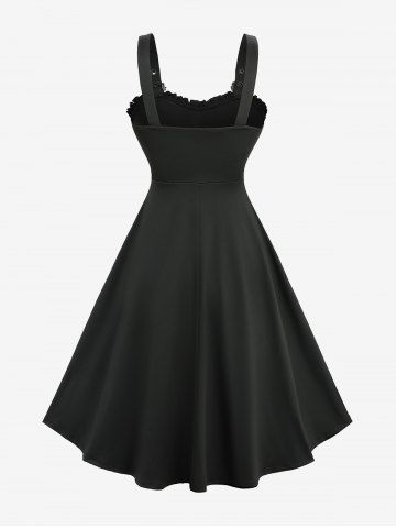 Casual Dresses > Flowers Flocking Mesh Ruched Crisscross Ruffles Asymmetrical Tank Dress