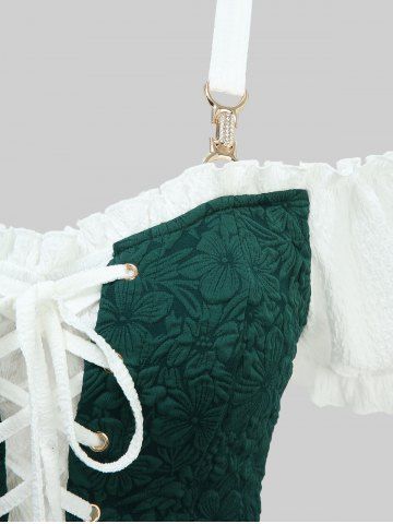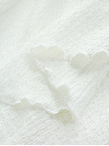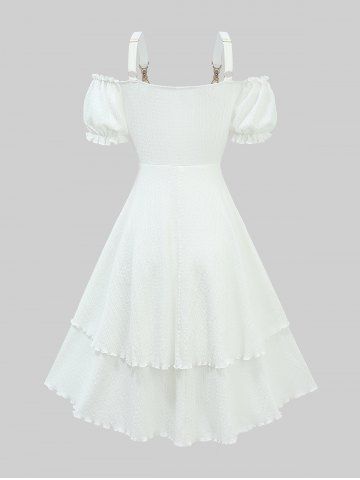 Flowers Jacquard Lace Up Panel Layered Ruffles Cold Shoulder Tank Dress - White - M