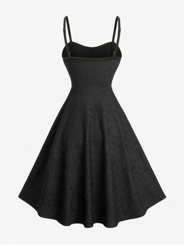 Jacquard Embroidered Textured Cross Bowknot A Line Dress - Black - Xxl