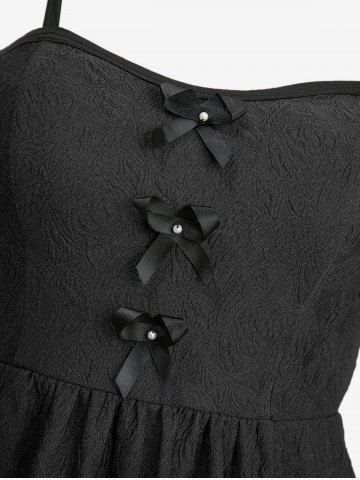 Jacquard Embroidered Textured Cross Bowknot A Line Dress - Black - Xxxl