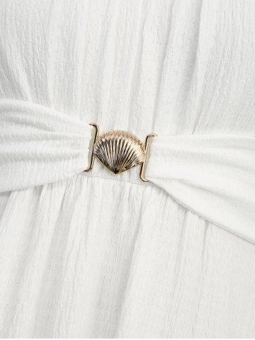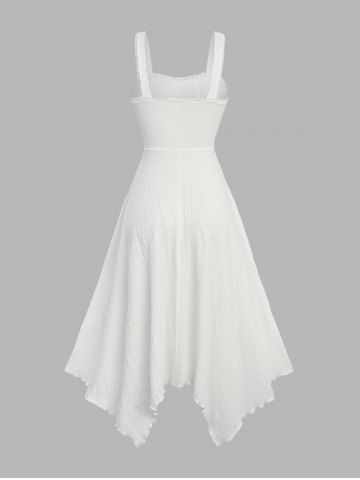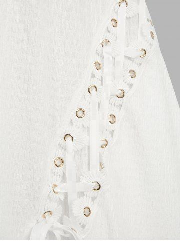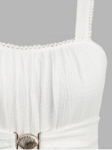 Lace-up Grommets Lace Trim Shell Buckle Ruffles Asymmetrical Tank Dress - White - Xl