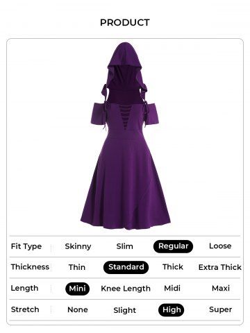 Plain Color Tied Ladder Cut Out Overlay Cold Shoulder High Waisted A Line Mini Hooded Dress - Concord - S