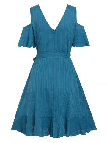 Ruffled Cold Shoulder Flounced Dress - Deep Blue - Xxxl