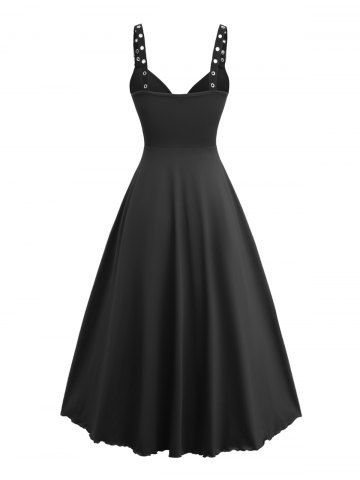 Ruffles Surplice Solid Straps Buckle Grommet A Line Dress - Black - Xxl