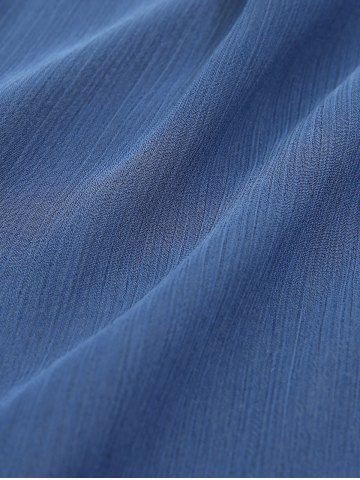 Sheer Mesh Flare Sleeves Cold Shoulder Ruched Midi Tank Dress - Deep Blue - Xxl