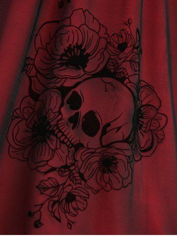 Skull Rose Flower Flocking Lace-up Grommets Lace Trim Tank Dress - Black - Xxl