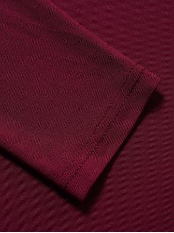 Solid Color Long Sleeve High Low Dress - Deep Red - M