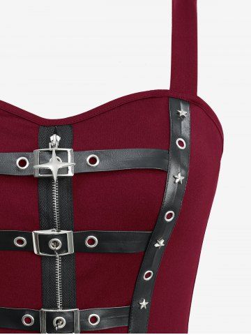 Star Zipper PU Strap Grommet Buckle Layered A Line Tank Dress - Red Wine - S