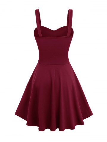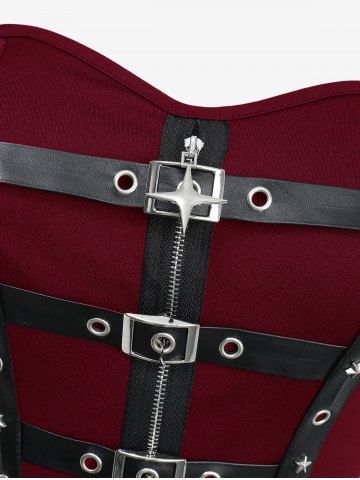 Star Zipper PU Strap Grommet Buckle Layered A Line Tank Dress - Red Wine - Xxl