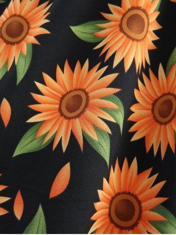 Sunflowers Print Ruched Twist Pockets Tank Dress - Black - Xxxl