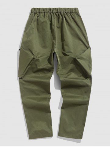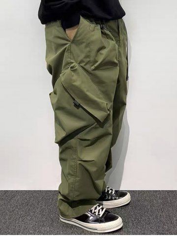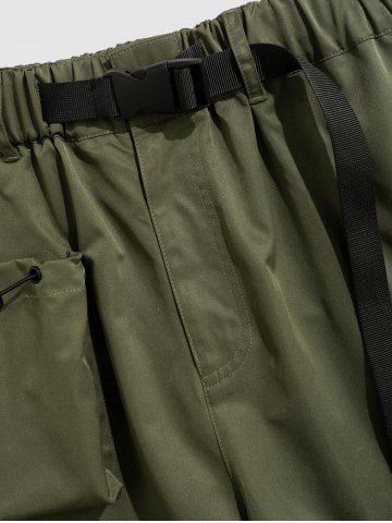 Buckle Belt Solid Color Windbreaker Cargo Parachute Pants - Green - Xxl