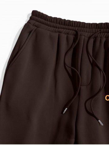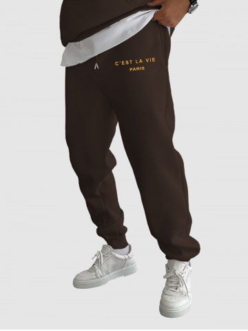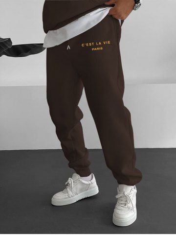 C'EST LA VIE PARIS Letter Printed Drawstring Fleece-lined Sports Jogger Pants - Deep Coffee - Xl