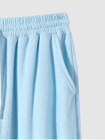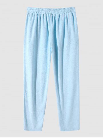 Men's Daily Casual Terry Cloth Drawstring Solid Color Straight Pants - Light Blue - L