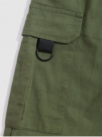 Men's Streetwear Solid Color Multi-pockets Design Techwear Beam Feet Drawstring Cargo Pants - Deep Green - L