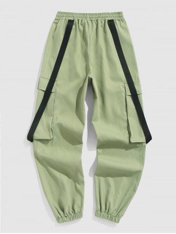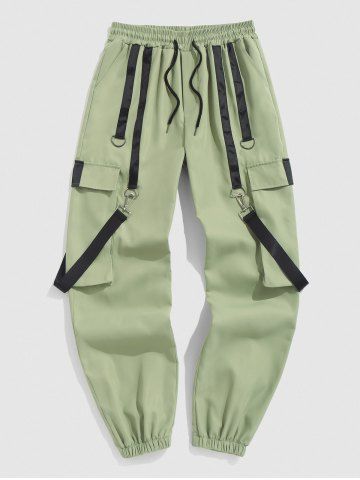 Multi-pockets Strap Design Cargo Pants - Green - L