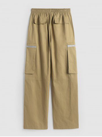 Zip Pocket Drawstring Wide Leg Cargo Pants - Light Coffee - Xl
