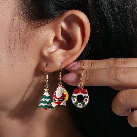 3Pcs Christmas Tree Santa Claus Candy Earrings Set - Multi