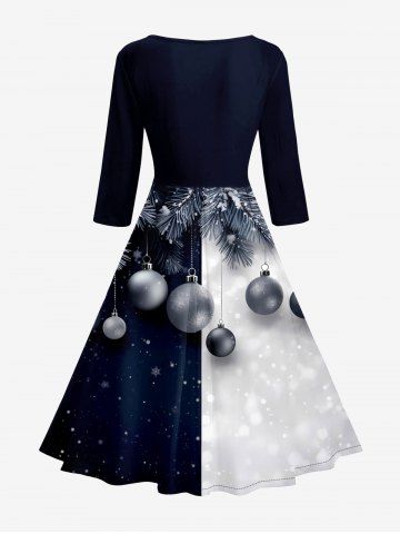 Christmas Ball Snowflake Colorblock Printed Midi 50's Vintage A Line Dress - Black - L