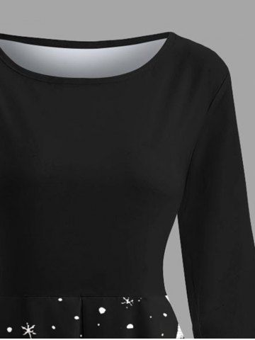 Christmas Snowflake Snowman Tree Print Midi 50's Vintage Dress - Black - 4xl