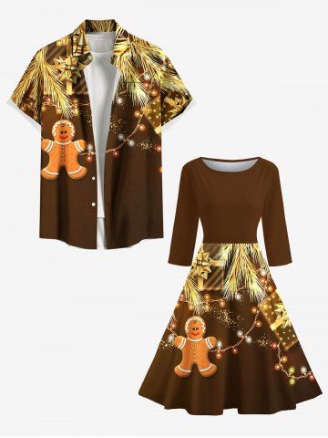 Christmas Tree Gift Light Gingerbread Print Midi 50's Vintage Dress - Deep Coffee - Xl