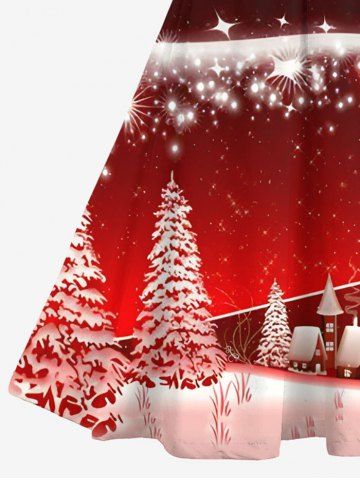 Christmas Tree House Glitter Sparkling Stars Ombre Galaxy Print 50's Vintage Midi Dress - Red - S
