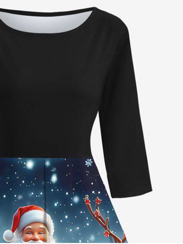 Christmas Tree Light Elk Santa Claus Snowflake Ombre Galaxy Print 50's Vintage Midi Dress - Multi-a - S