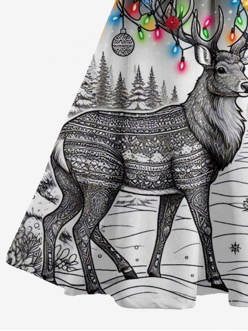 Dresses > Colorful Christmas Light Elk Tree Ball Galaxy Print Midi 50's Vintage Dress